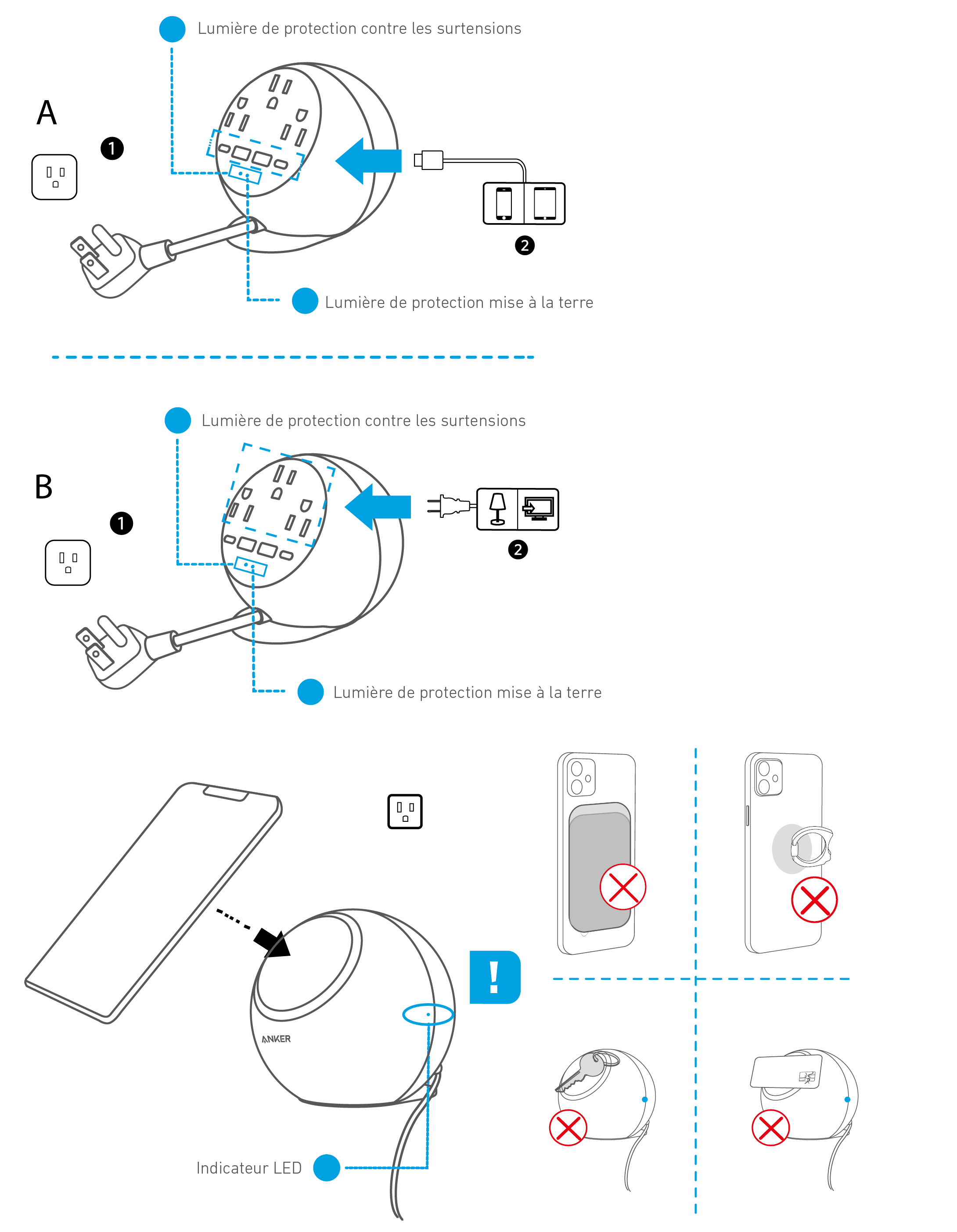 Sortie USB totale de 47W avec une sortie sans fil maximale de 15W. | ||
