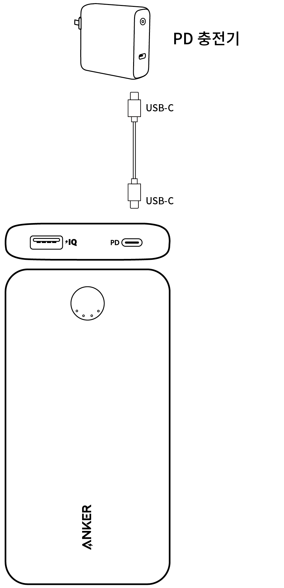 PD 충전기(별매)를 통해 PowerCore를 충전하세요.