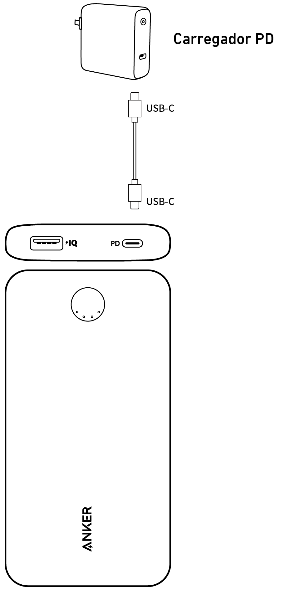 Recarregue seu PowerCore por meio de um carregador PD (não incluso).