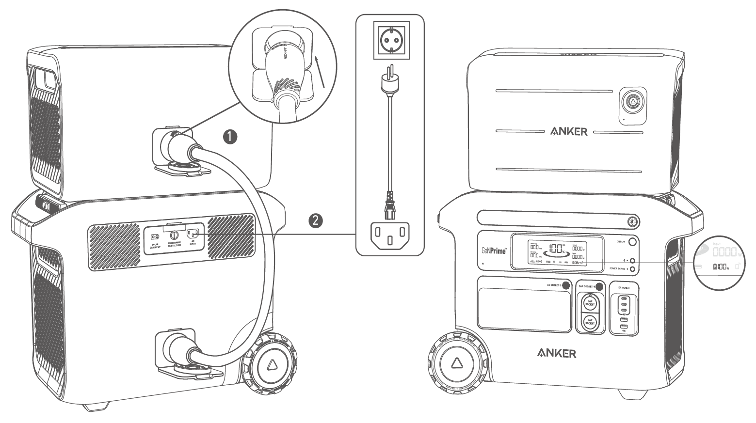 2. Ricarica la tua stazione di alimentazione portatile tramite ingresso CA o CC.