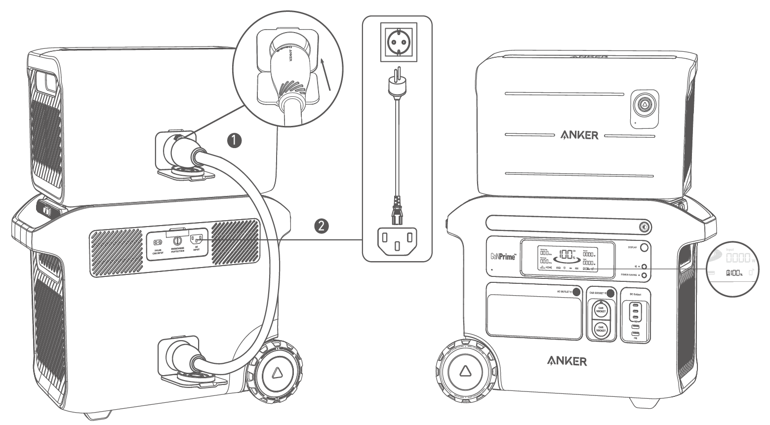 2. Rechargez votre centrale électrique portable via une entrée CA ou une entrée CC.