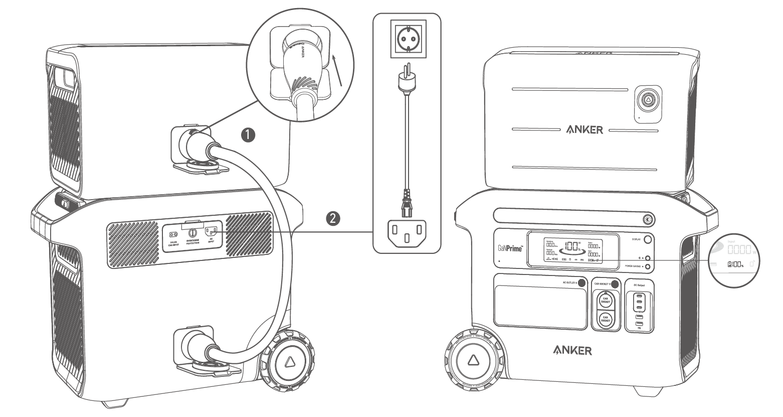 2. Taşınabilir güç istasyonunuzu AC girişi veya DC girişi aracılığıyla şarj edin.