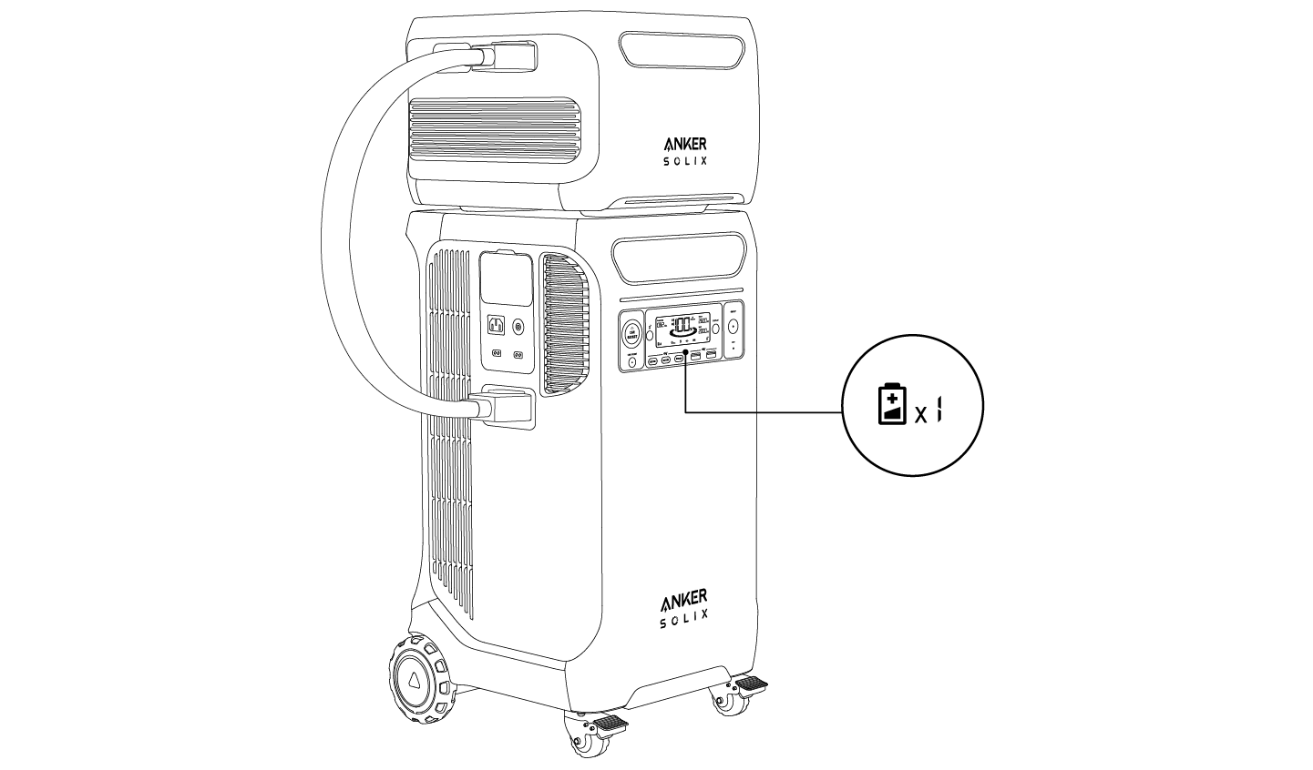 5.本製品が正常に接続されると、Anker SOLIX F3800 Portable Power Stationの液晶画面に拡張バッテリーのアイコンが表示されます。画面上の「x」の後の数字は、接続されている拡張バッテリーの数を表します。アイコンが表示されない場合は、接続に問題がある可能性があるため、接続し直してみて下さい。