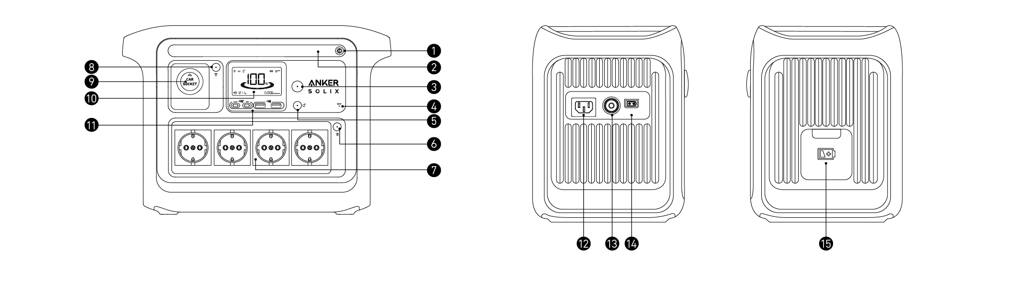 A entrada solar suporta um carregador solar de 11-60V com um conector XT-60. Se usar um carregador solar de 11-32V, a corrente suporta no máximo 10A. Quando usa um carregador solar de 32-60V, a corrente suporta no máximo 12,5A. Recomendamos o uso de painéis solares Anker (200W ou 400W) para obter a melhor compatibilidade.