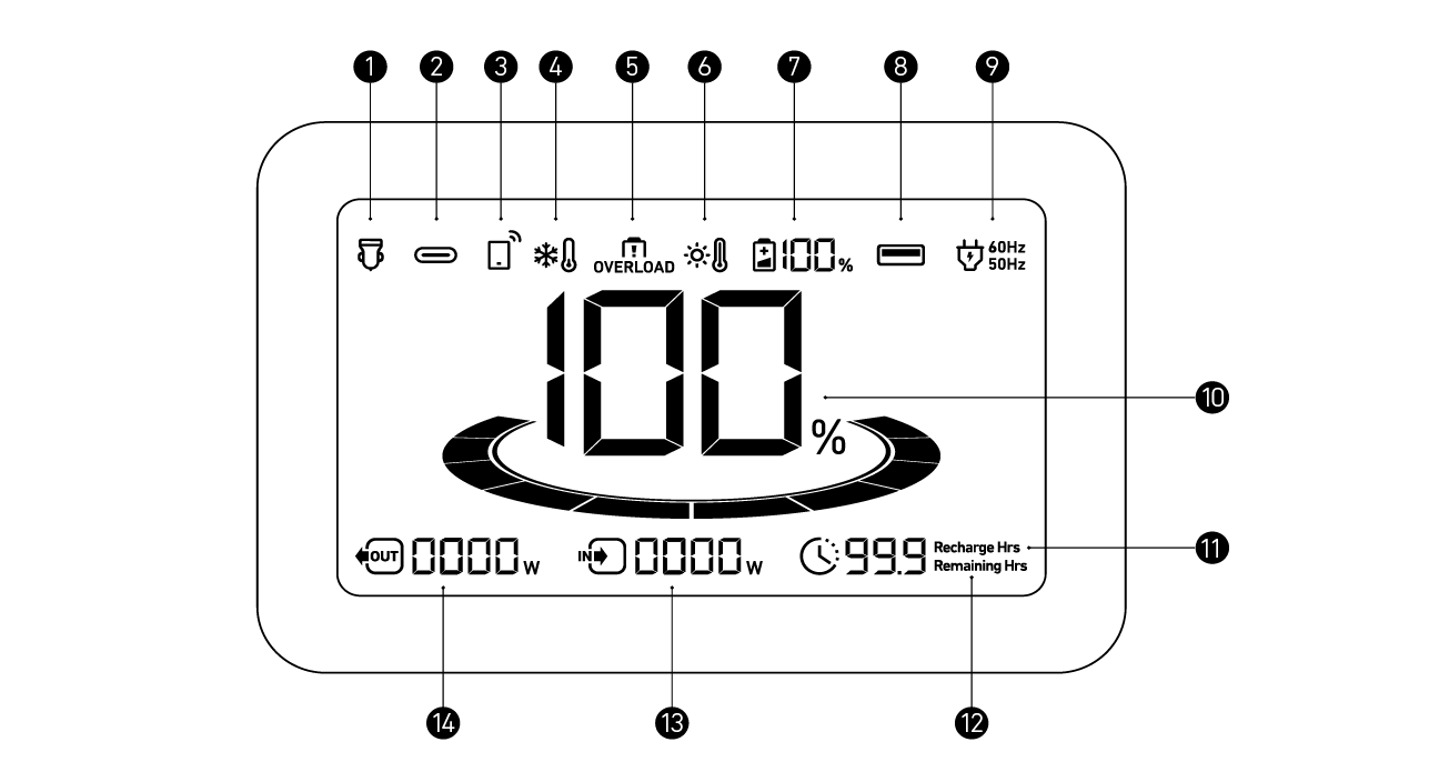 Quando o indicador de "Bateria Restante" surgir na tela LCD, a sua estação de energia estará pronta para carregar dispositivos.
