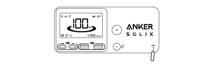Si votre station d'alimentation ne fonctionne pas correctement, insérez un trombone ou une épingle dans le trou de réinitialisation pendant 1 seconde pour une réinitialisation d'usine. Si la station d'alimentation ne fonctionne toujours pas, veuillez contacter support@anker.com.