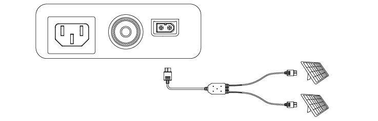 Rechargez votre station d'alimentation avec une entrée solaire maximale de 300 W en connectant jusqu'à deux panneaux solaires, comme indiqué sur la figure, avec un câble de charge solaire.