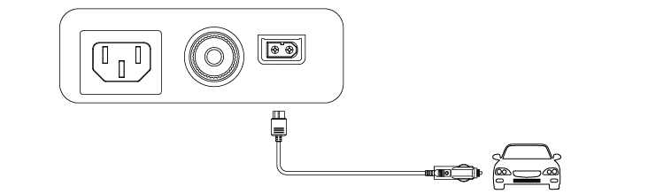 Rechargez votre station d'alimentation en la branchant sur le port de sortie d'une voiture à l'aide du câble de charge pour voiture.