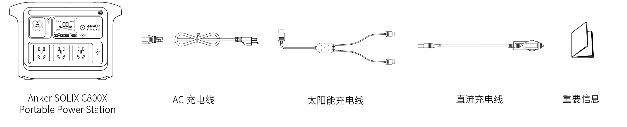 使用AC充电线将本发电站连接到壁装插座进行充电。