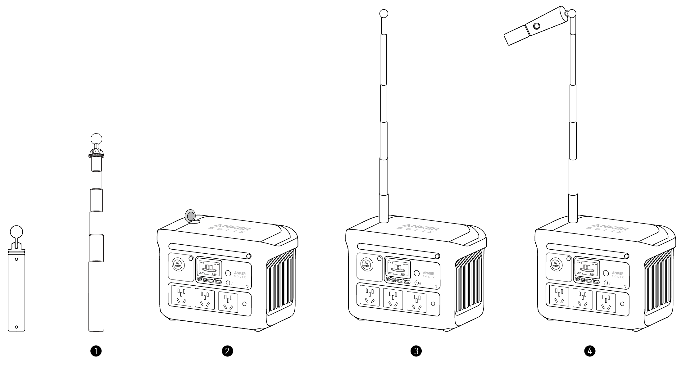 太阳能输入支持带有 XT-60 接口的 11-60V 太阳能充电器。 支持的最大电流为 10A。我们建议使用 Anker 太阳能电池板(200W 或 400W)以获得最佳兼容性。
