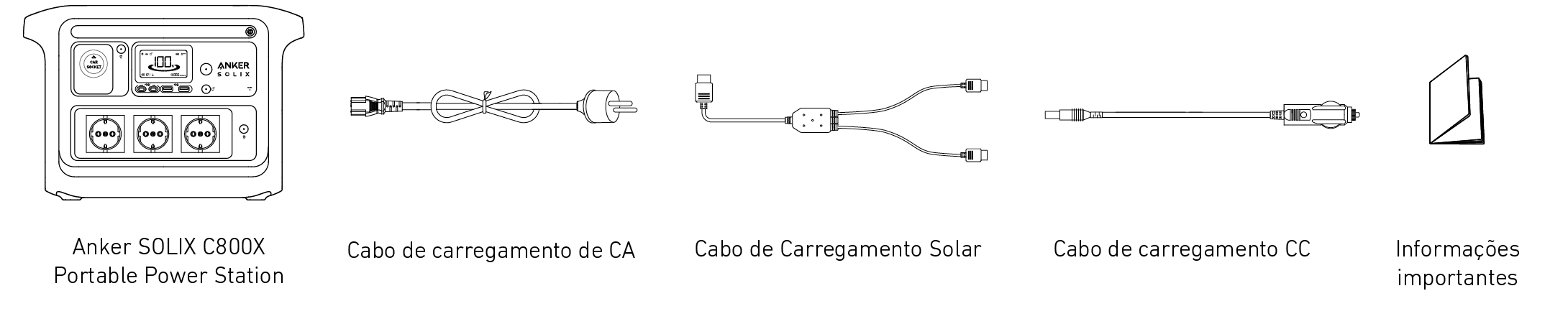A entrada solar suporta um carregador solar de 11-60V com um conector XT-60. A corrente suportada é de 10 A no máximo. Recomendamos a utilização de painéis solares Anker (200 W ou 400 W) para obter a melhor compatibilidade.