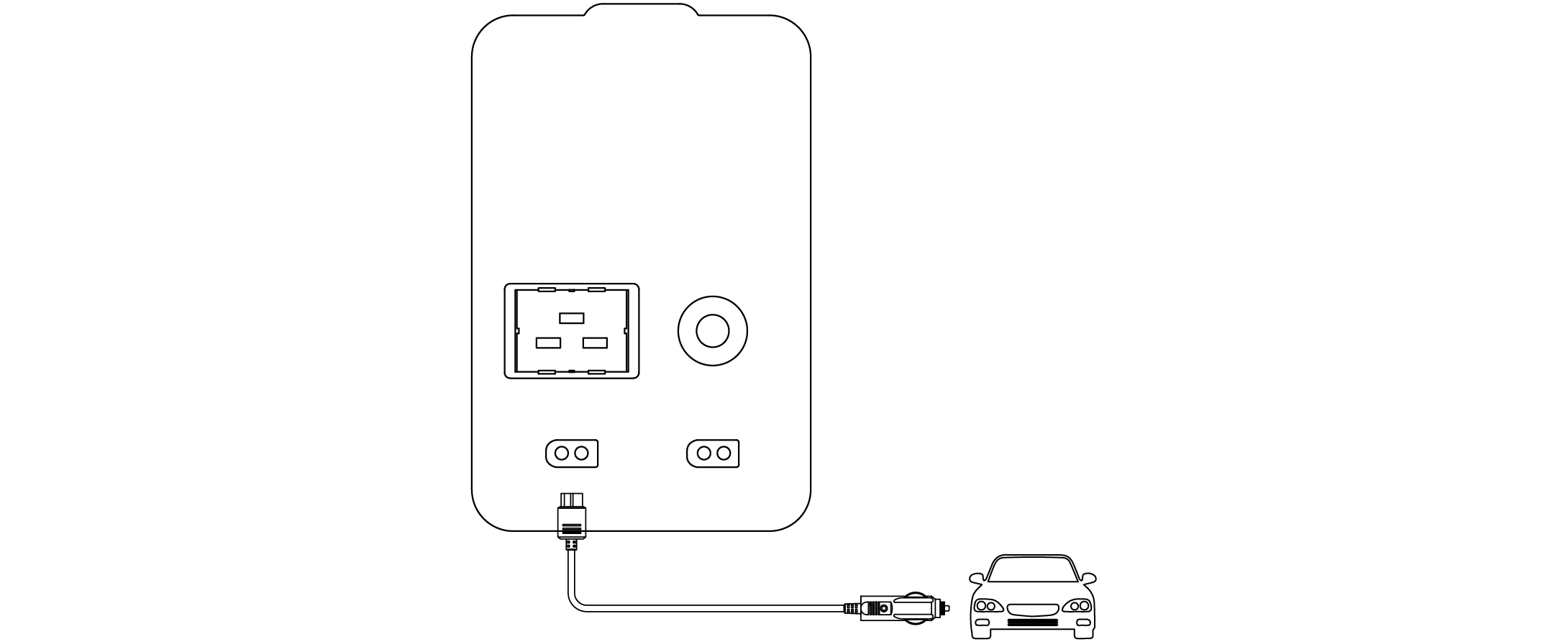 Töltse fel a tápegységet az autó kimeneti portjához csatlakoztatva az autós töltőkábellel (nem tartozék).