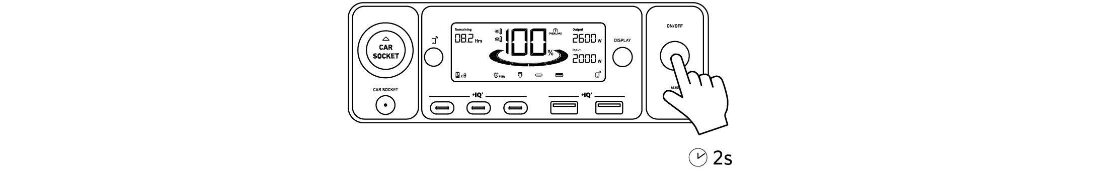 Nyomja meg a BE/KI gombot 2 másodpercig a tápegység be- és kikapcsolásához.