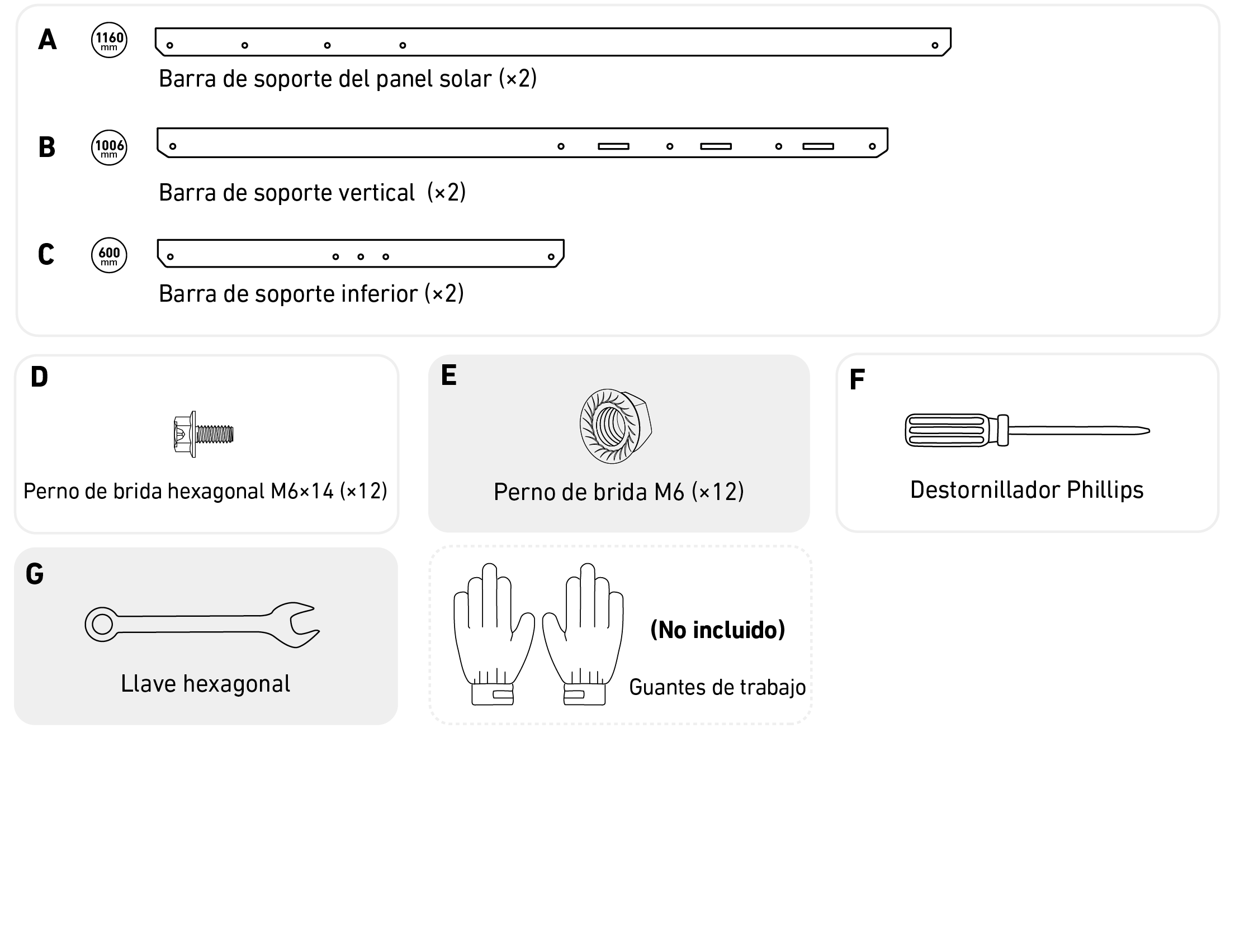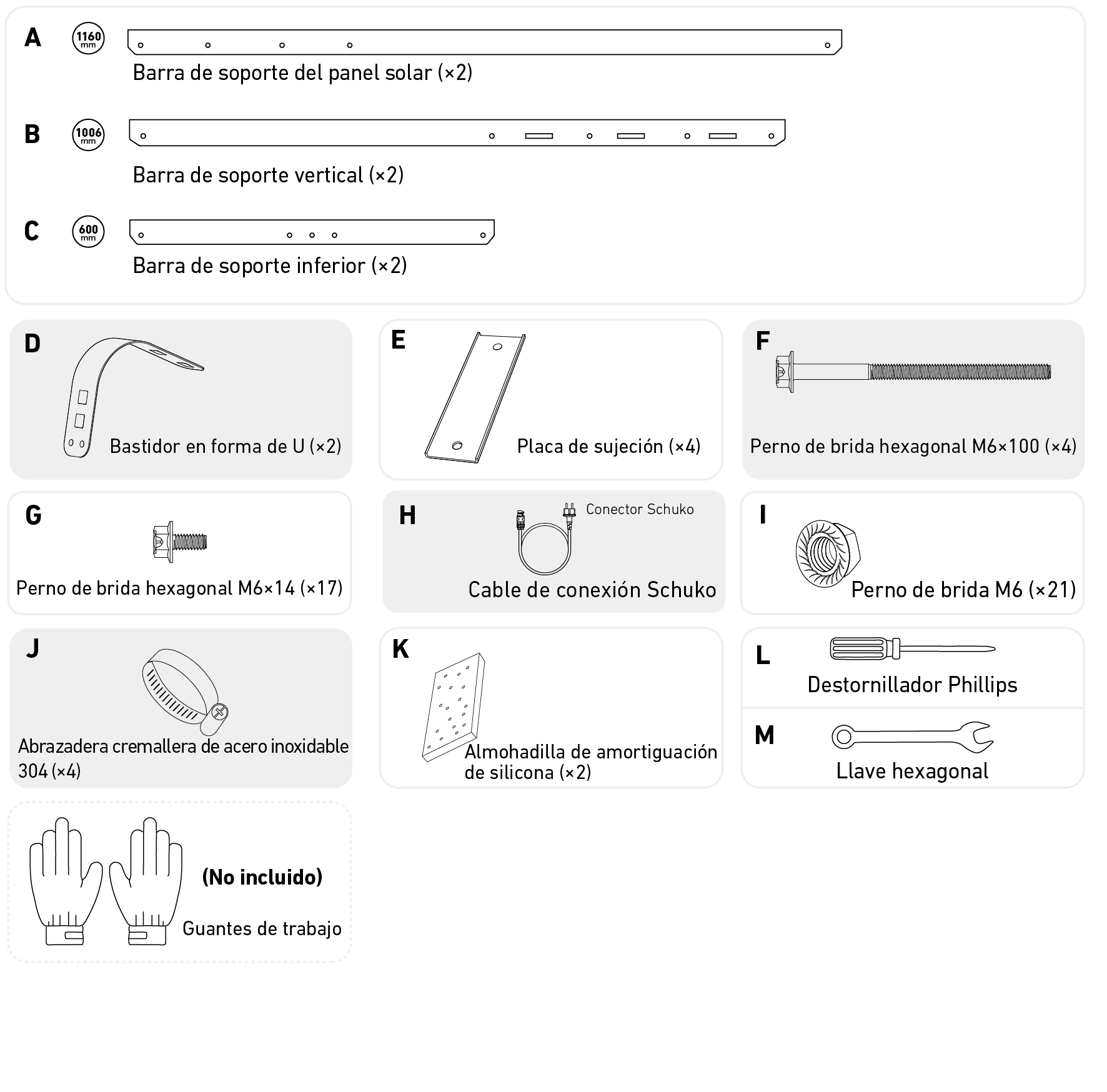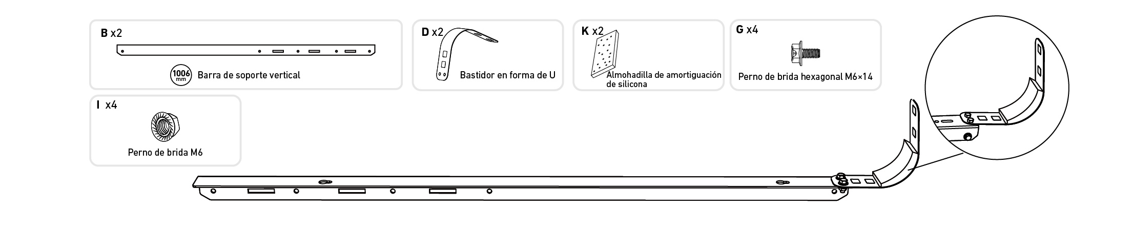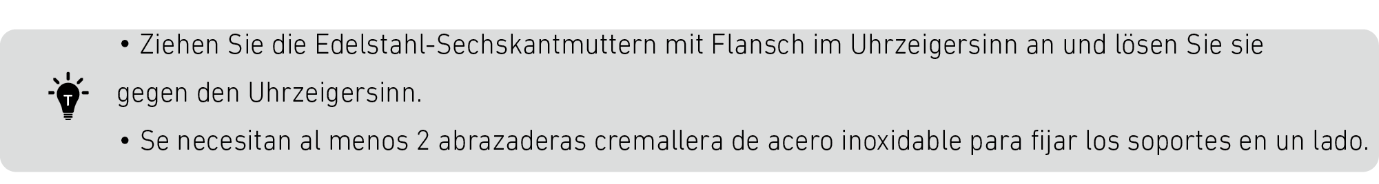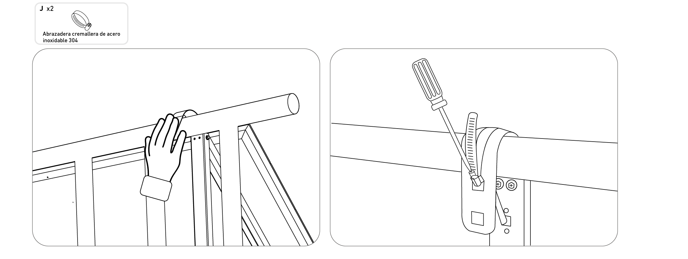 *Las abrazaderas cremallera de acero inoxidable y las tuercas no vienen incluidas en el paquete.