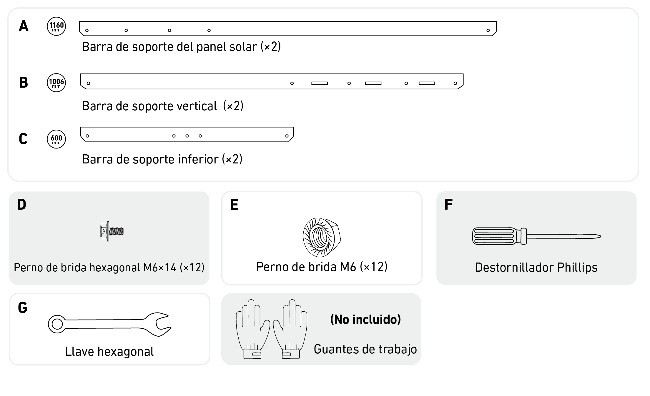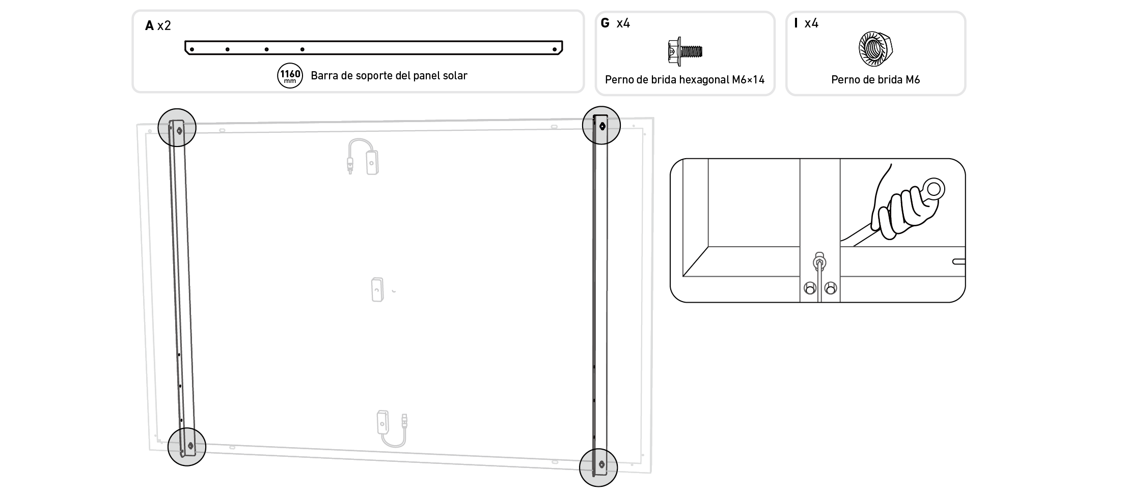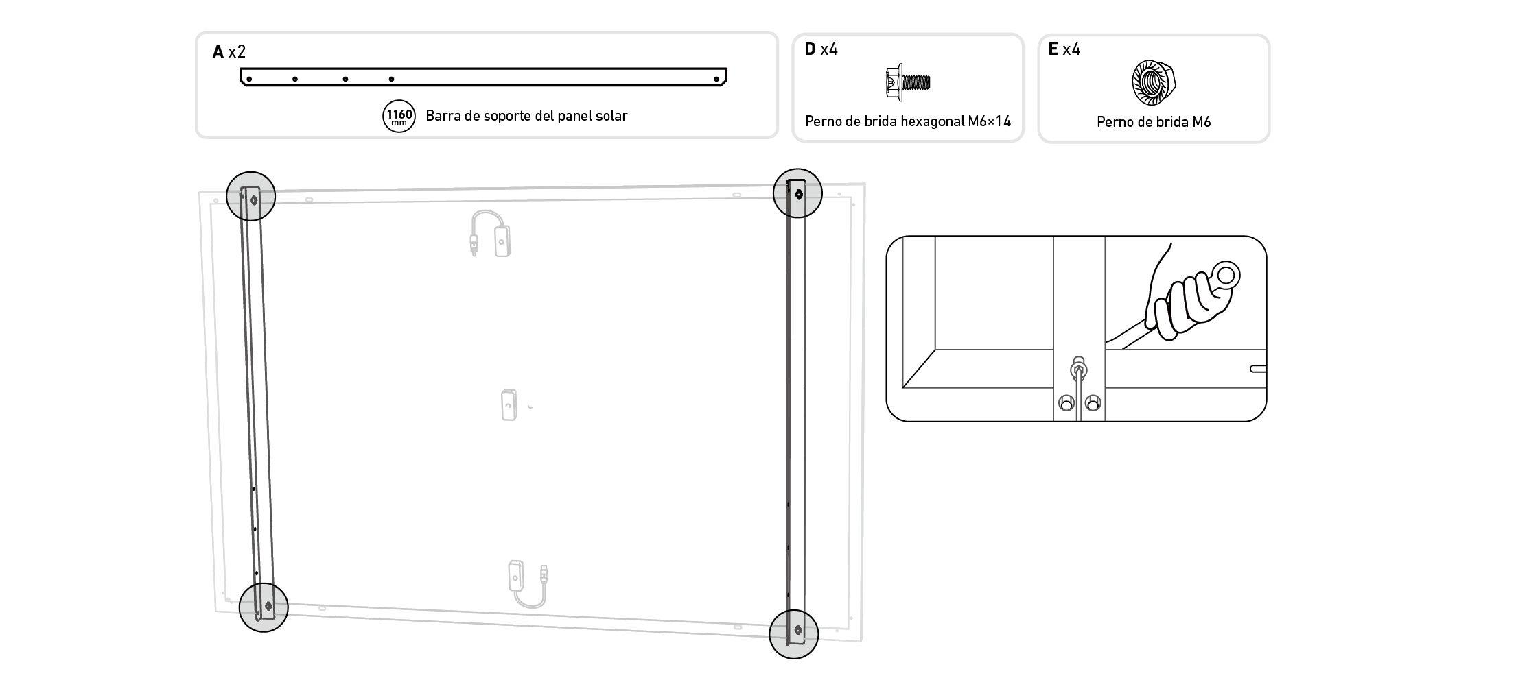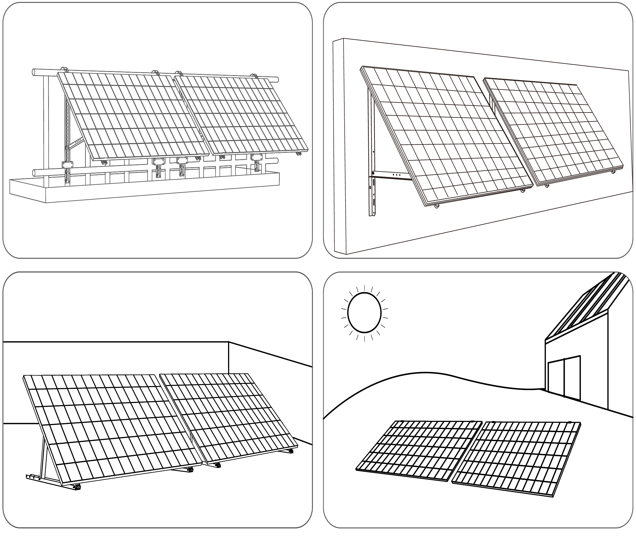 El panel solar se puede montar en el balcón o en el suelo. Según la ubicación que se elija, habrá diferentes métodos de instalación y se usarán accesorios distintos. Elija una ubicación adecuada antes de instalar los paneles solares.