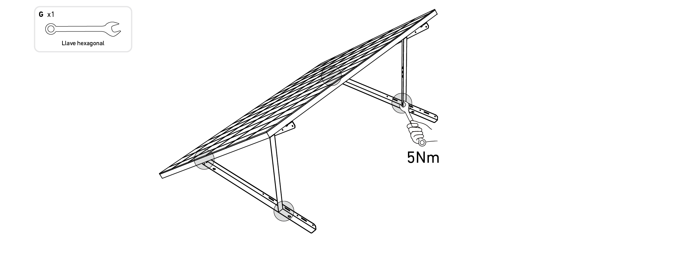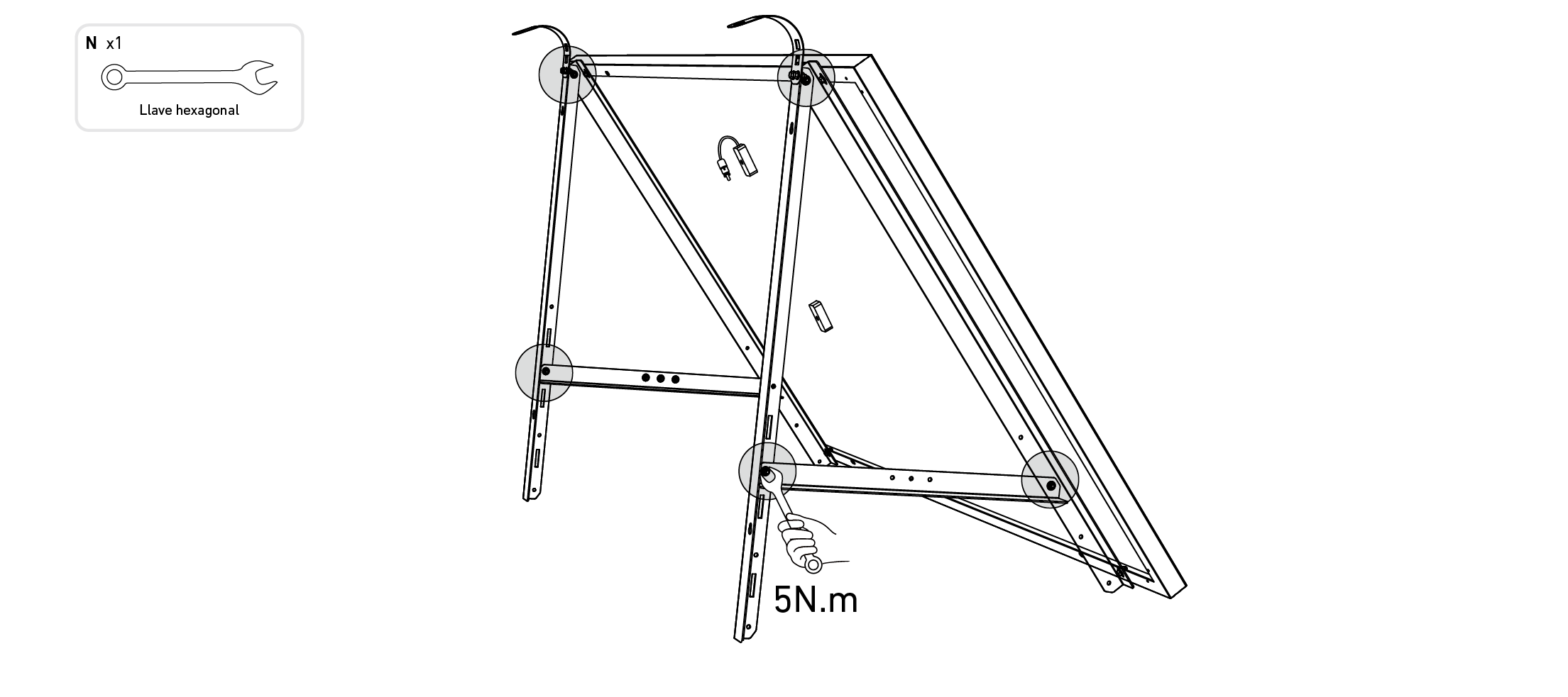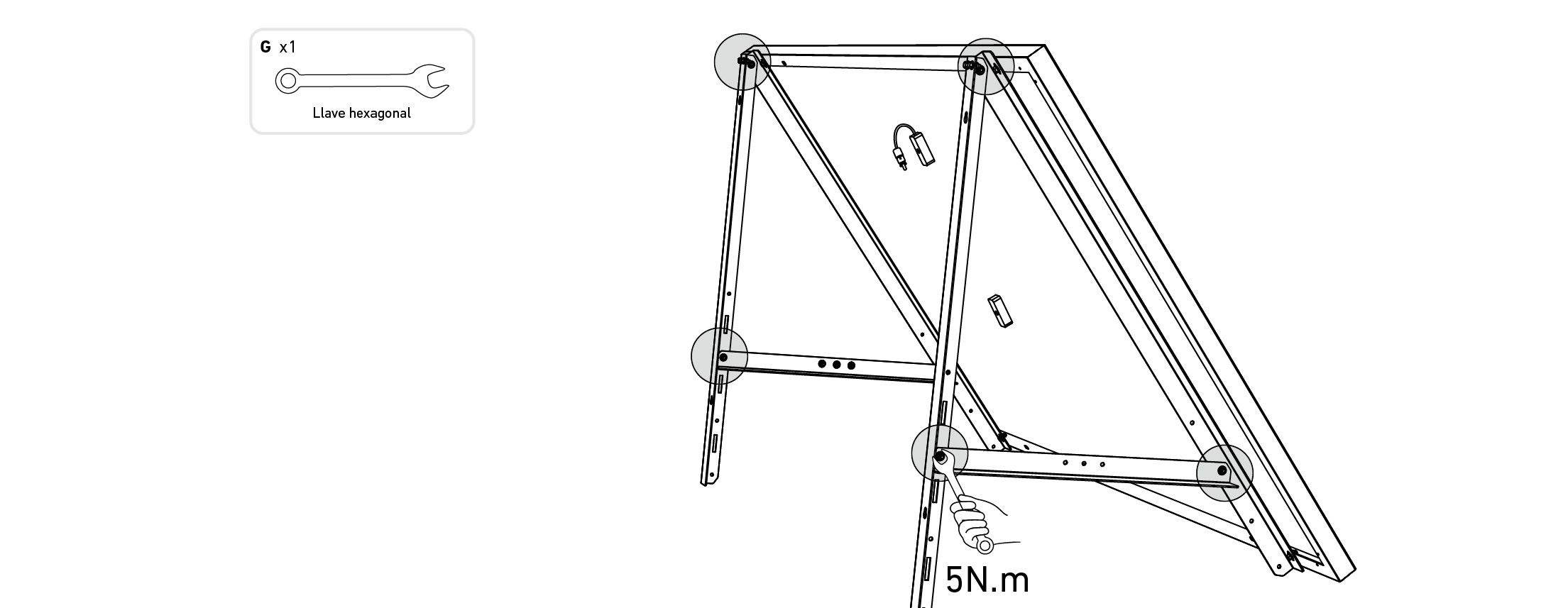 4. Apriete todos los tornillos con una llave inglesacon una torsión de 5N.m.