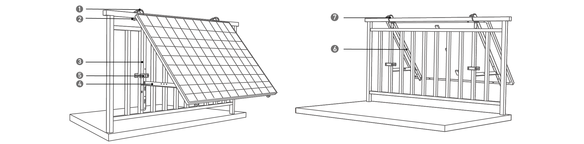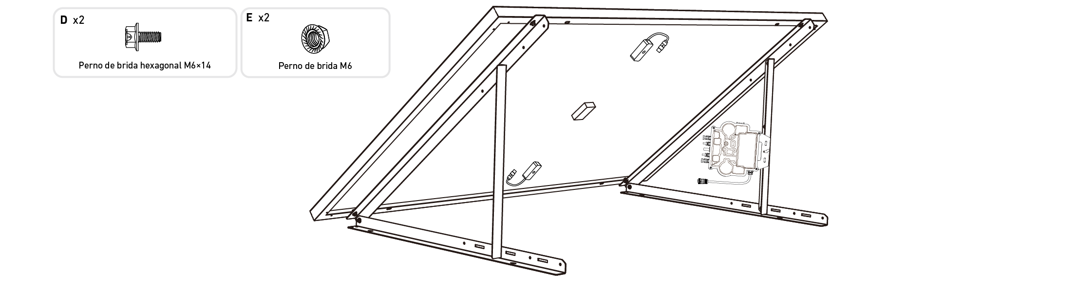 3. Coloque las barras de soporte inferiores y ajuste el ángulo para conseguir la máxima exposición a la luz solar.