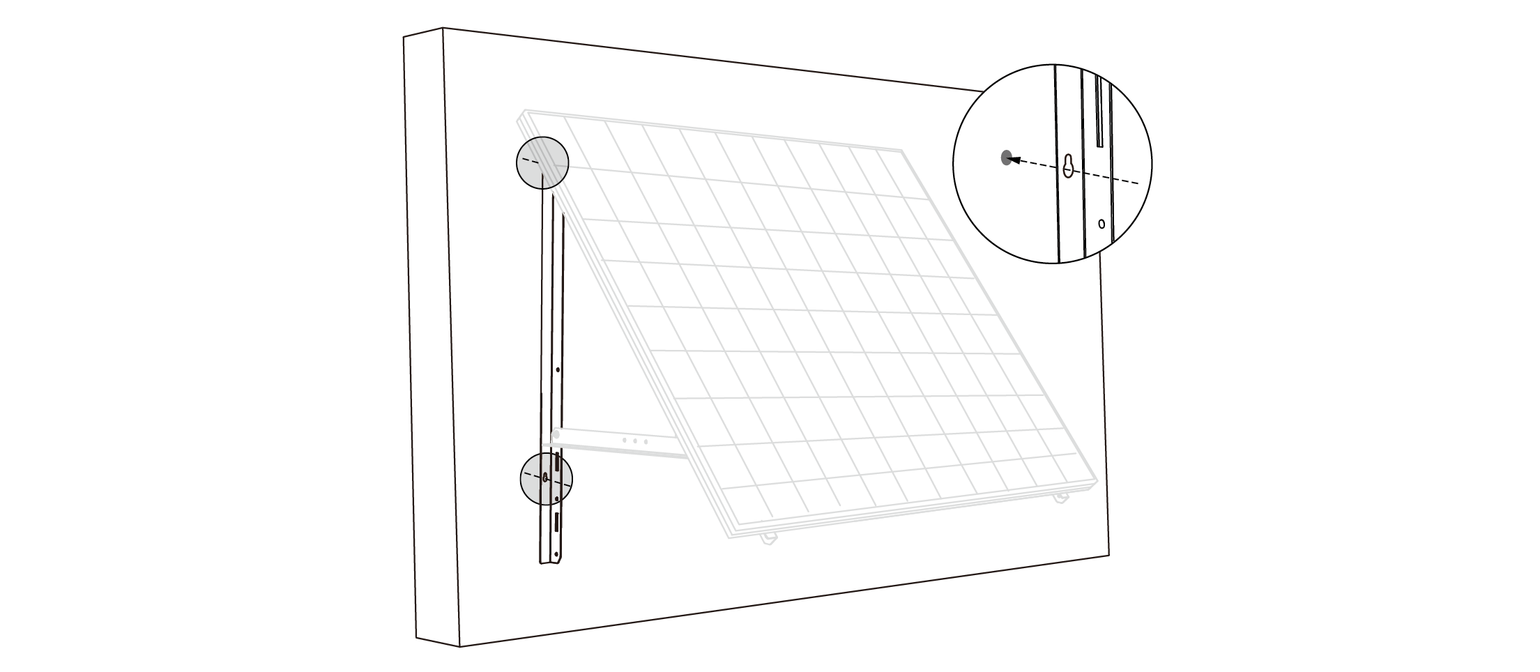 5. Alinee el panel solar con los agujeros en las barras de soporte verticales para marcar cuatro puntos de montaje. Los puntos de montaje en la misma barra de soporte vertical deben estar separados 700 mm uno del otro.