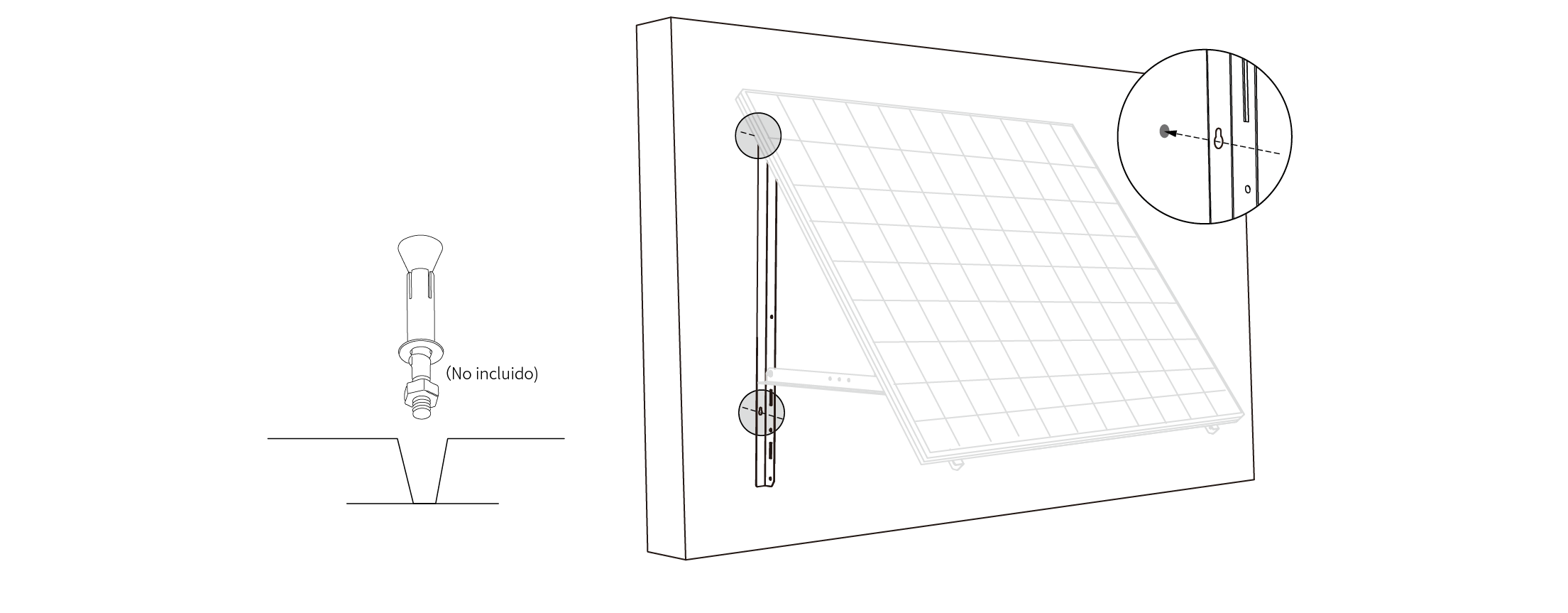 5. Retire el panel solar, marque los puntos de montaje y haga los orificios con un taladro eléctrico. Una vez hecho esto, fije las barras con unos tacos.