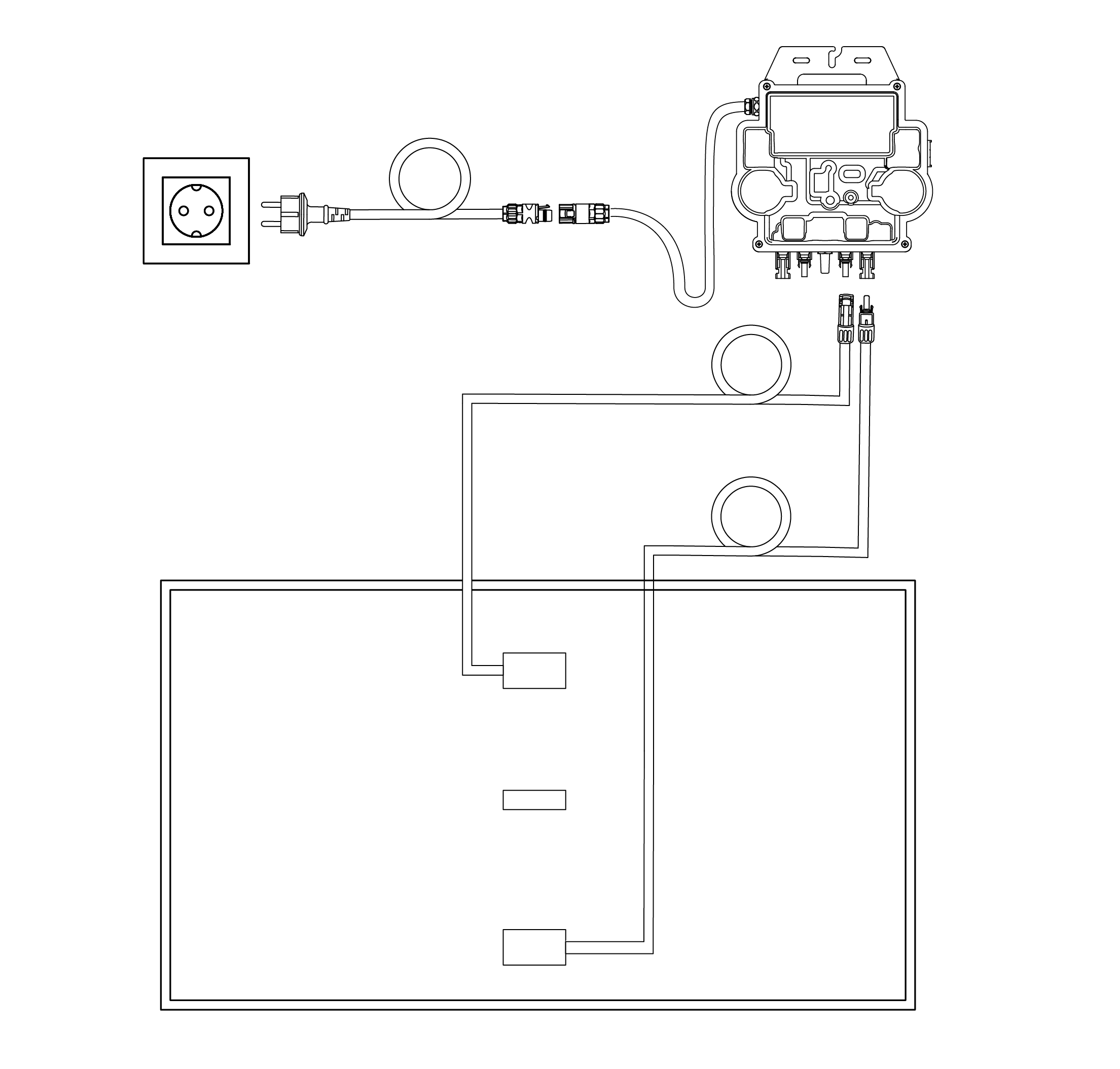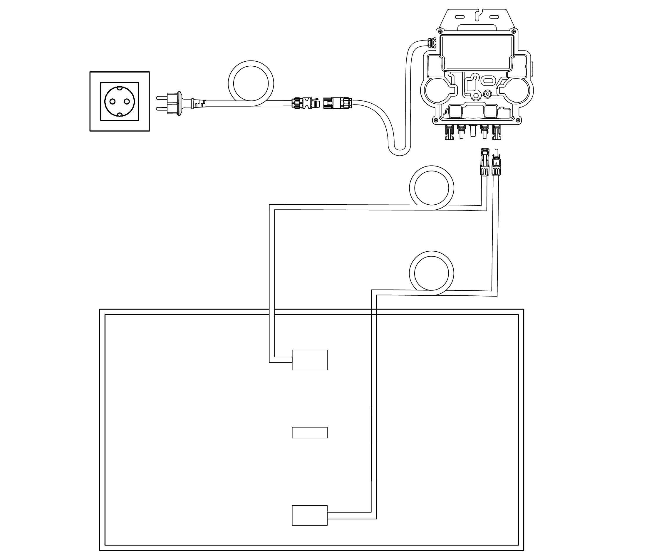 Decida dónde va a colocar el microinversor y el panel solar con el cable de conexión Schuko y el cable alargador del panel solar.