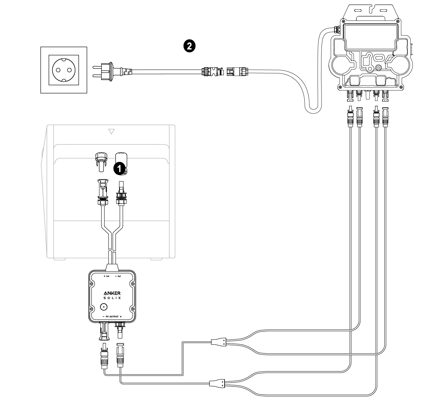 Beim Installieren von zwei Solarbanken muss ein Mikro-Wechselrichter installiert werden. In dieser Situation können Sie wählen, den Ausgangsschalter nicht anzuschließen.