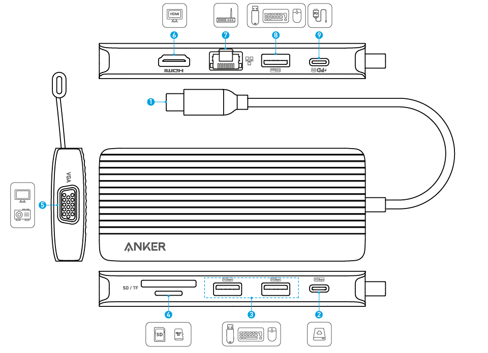 Guía del usuario del conmutador Anker USB-C Hub (10-in-1, Dual Display) (A83C2)