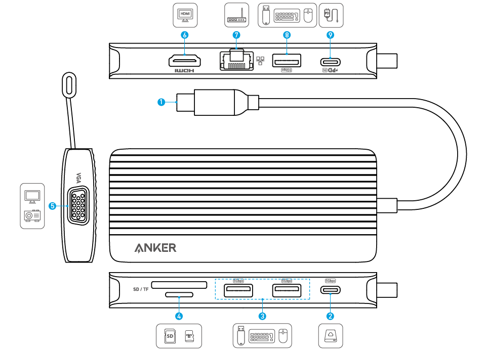 Uživatelská příručka Anker USB-C Hub (10-in-1, Dual Display) User Guide (A83C2)