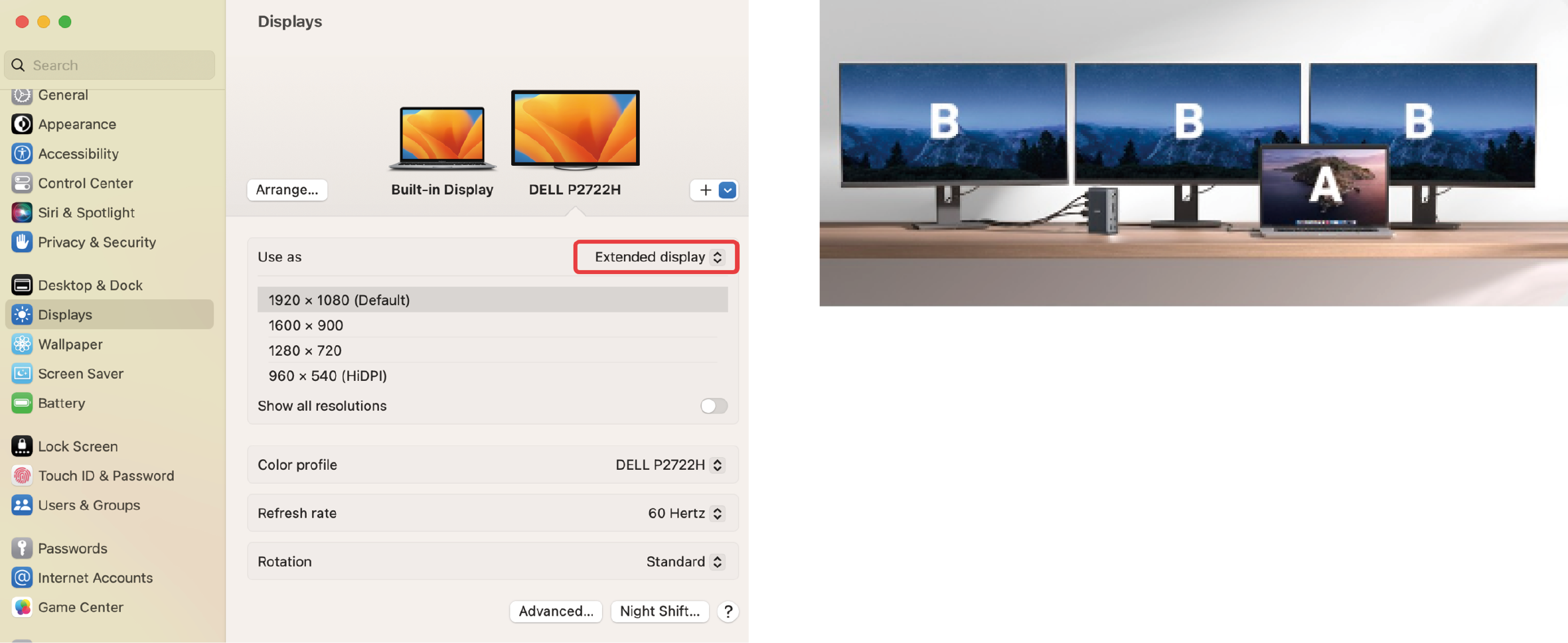 1. Συνδέστε το φορητό υπολογιστή και τις οθόνες μέσω του κέντρου και κάντε κλικ στο "Ρυθμίσεις Οθόνης".