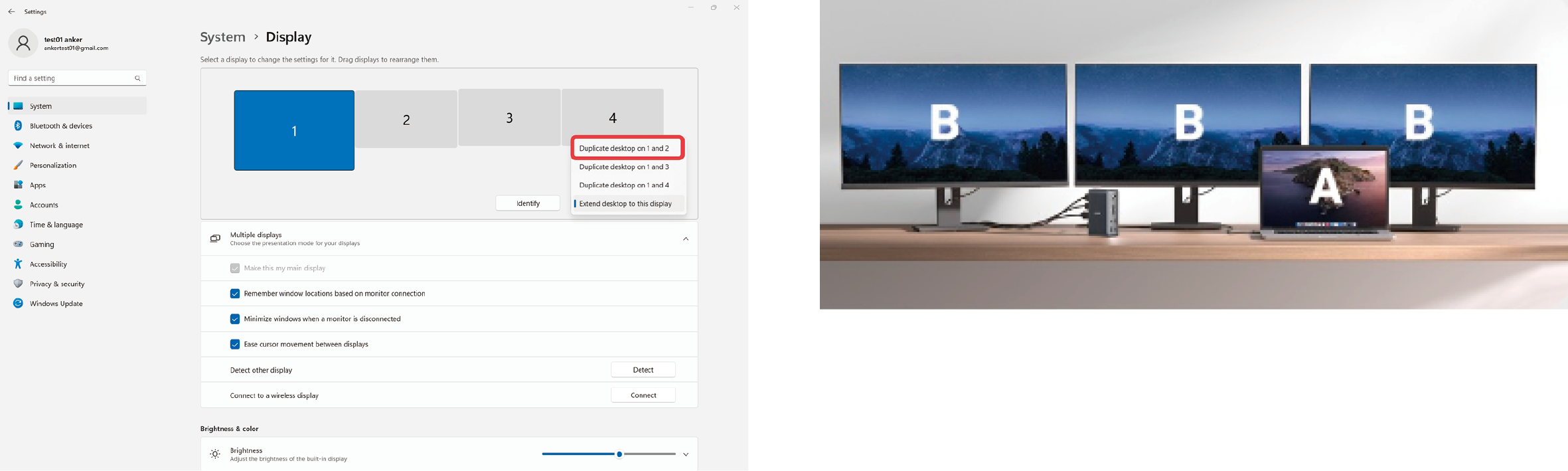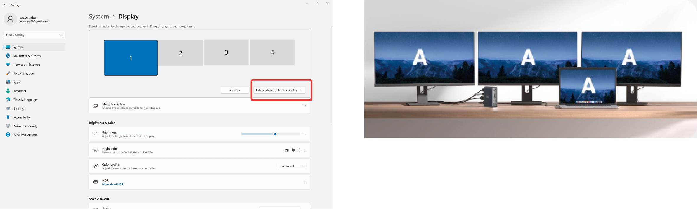 Εμφάνιση διαφορετικού περιεχομένου σε κάθε μία από τις τέσσερις οθόνες, συμπεριλαμβανομένου του φορητού υπολογιστή.
