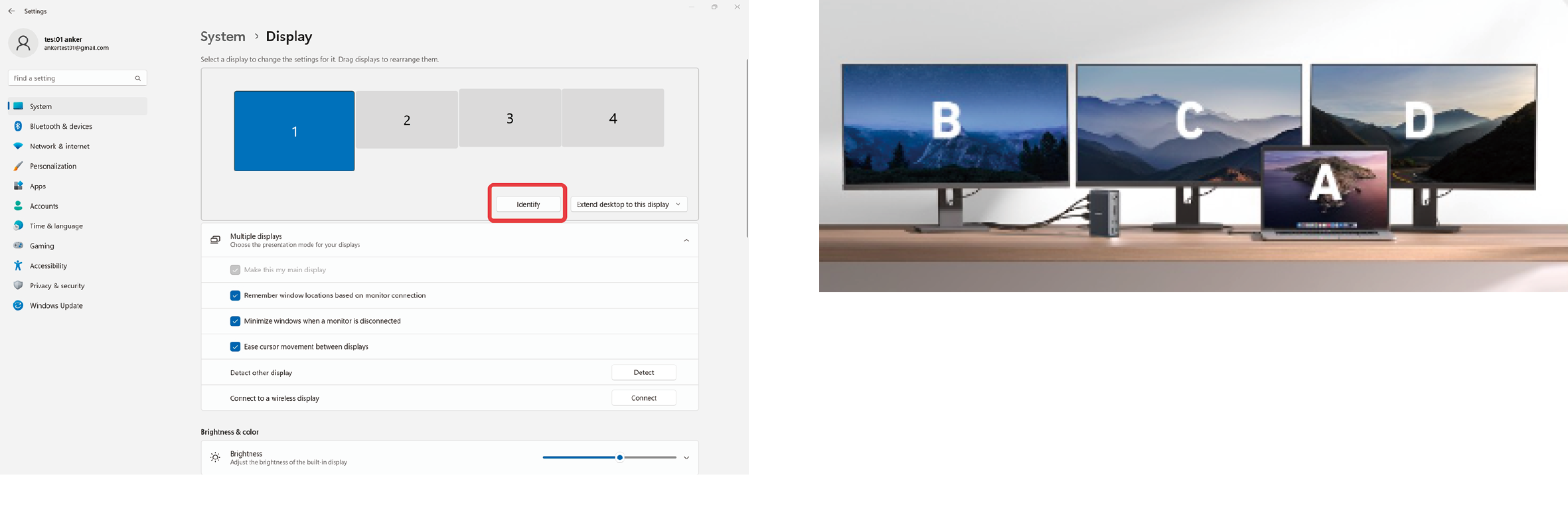 عرض محتوى مختلف على كل من الشاشات الأربعة، بما في ذلك الكمبيوتر المحمول.