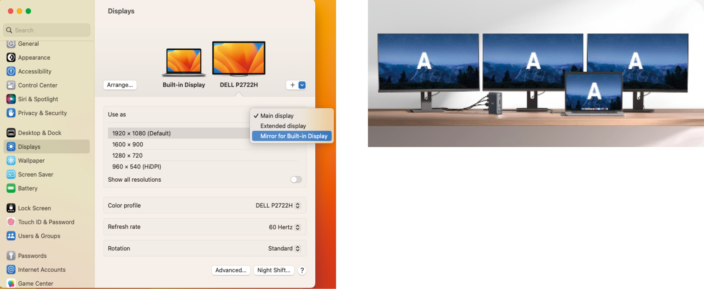 MacBook understøtter to udvidede tilstande som vist nedenfor: