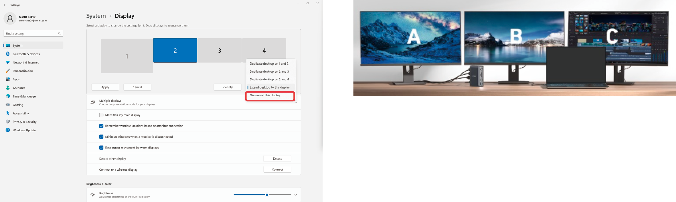 1. Tilslut din bærbare computer og skærmene gennem hubben og klik derefter på "Skærmindstillinger".