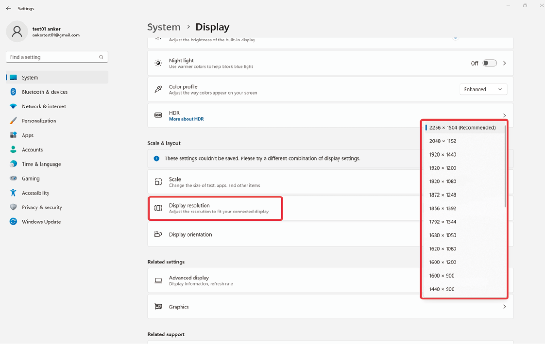 - Verificer, om skærmen og HDMI-kablet understøtter din indstillede opløsning og opdateringshastighed.