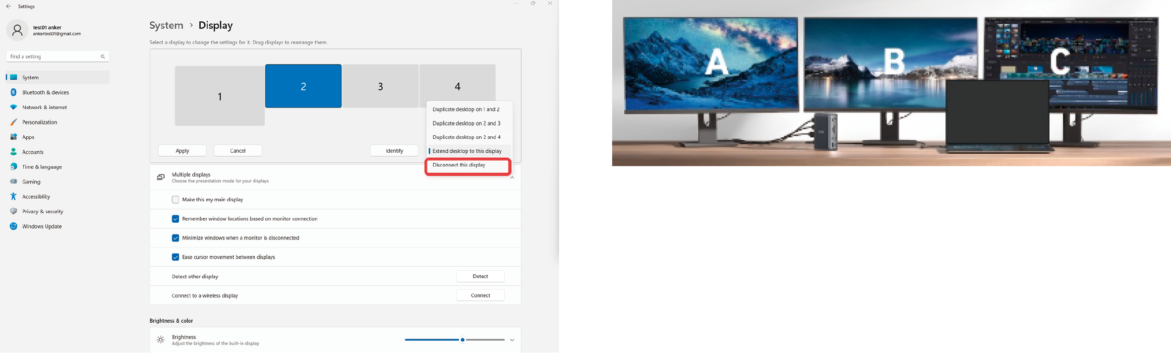 1.Collega il tuo laptop e i monitor tramite il hub e poi clicca su "Impostazioni display".
