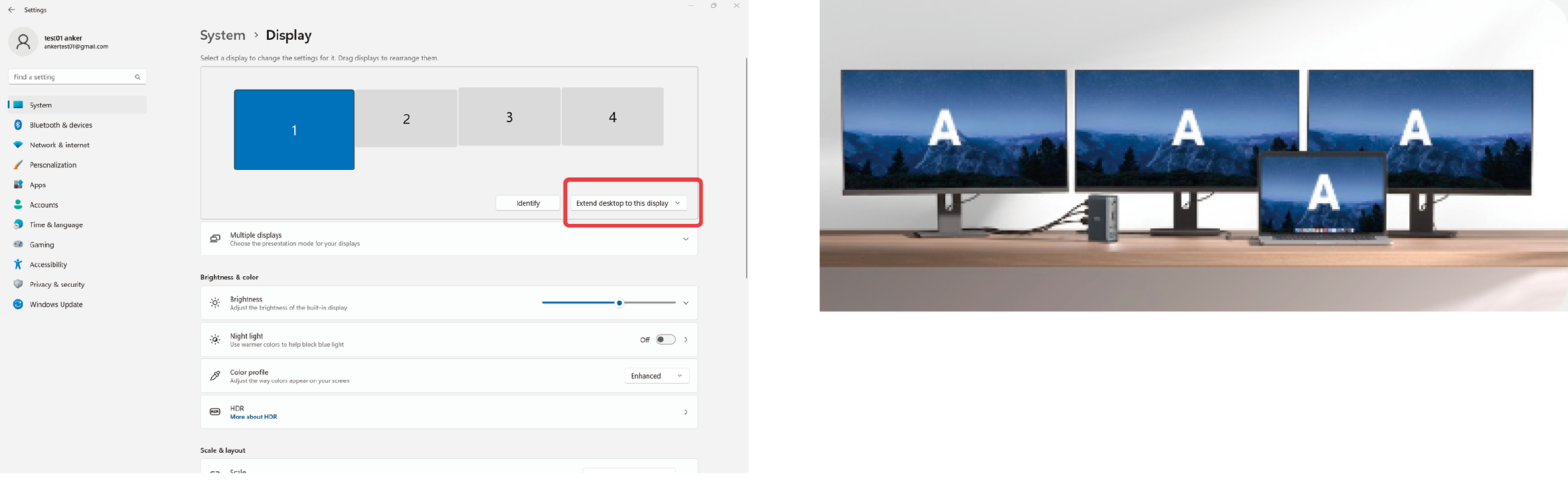 Prikaži različno vsebino na vsakem od štirih zaslonov, vključno z prenosnikom.
