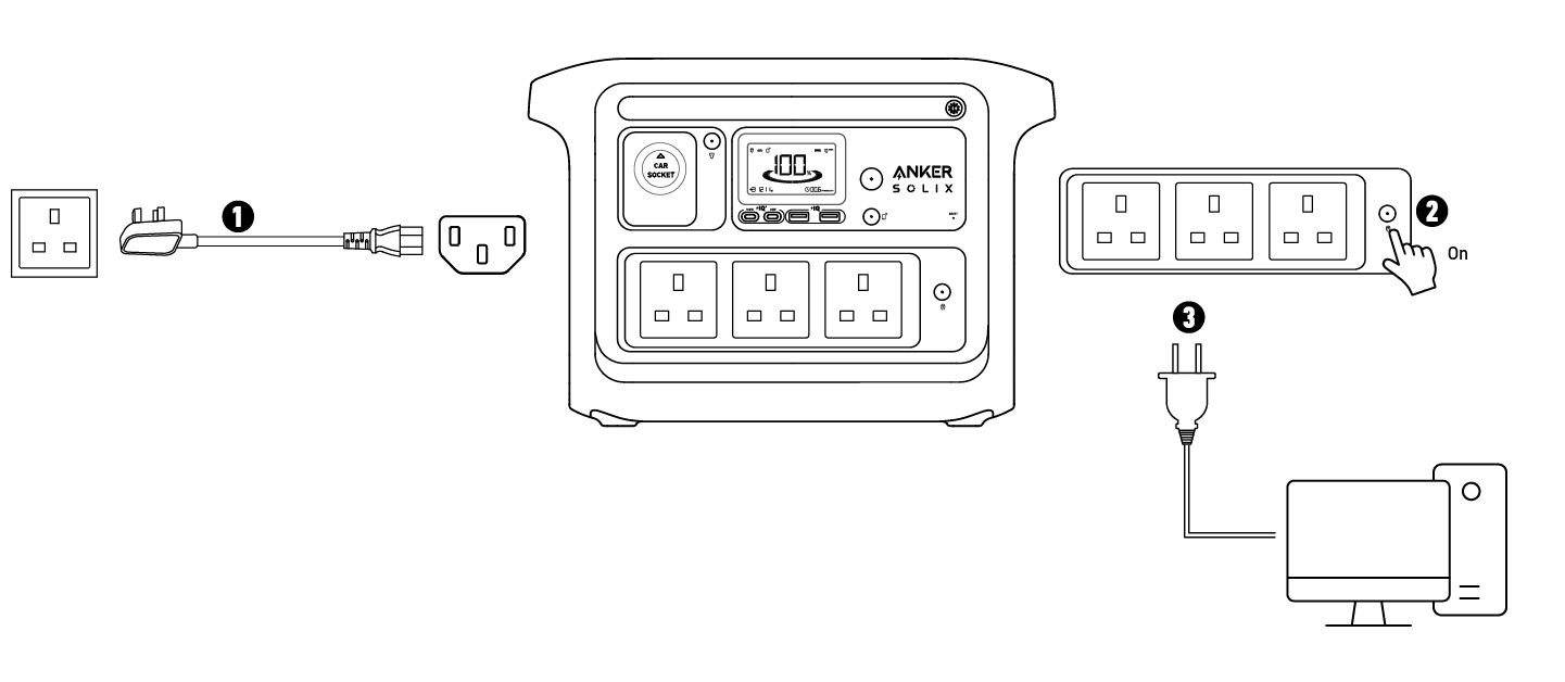 اضغط على زر الطاقة الرئيسي لمدة 3 ثوانٍ لتشغيل أو إيقاف محطة الطاقة الخاصة بك.