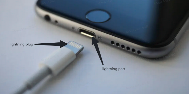 Lightning port: USB-A to lightning/USB-C to lightning cables.
