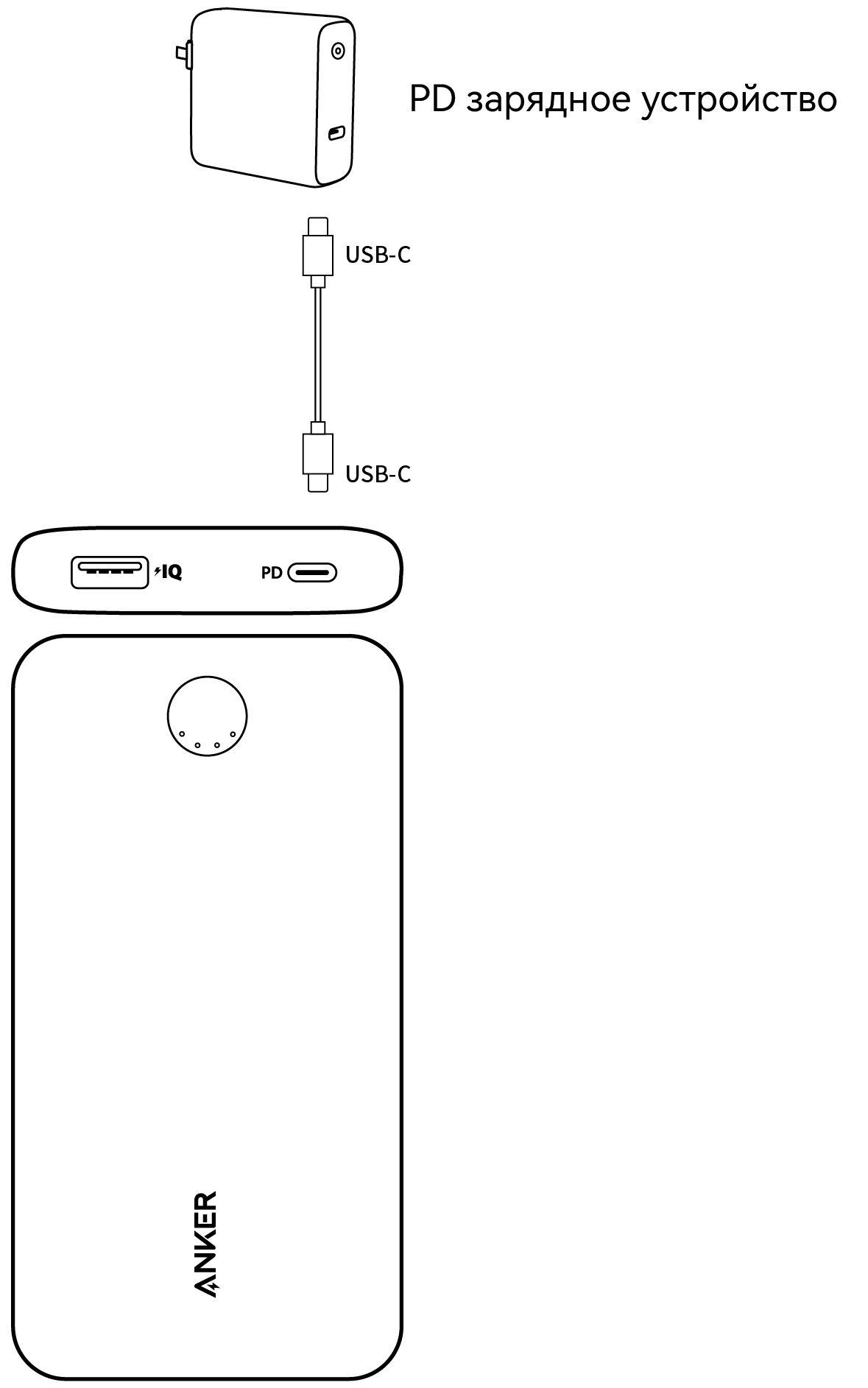 Перезарядите свой PowerCore через PD зарядное устройство (не включено).
