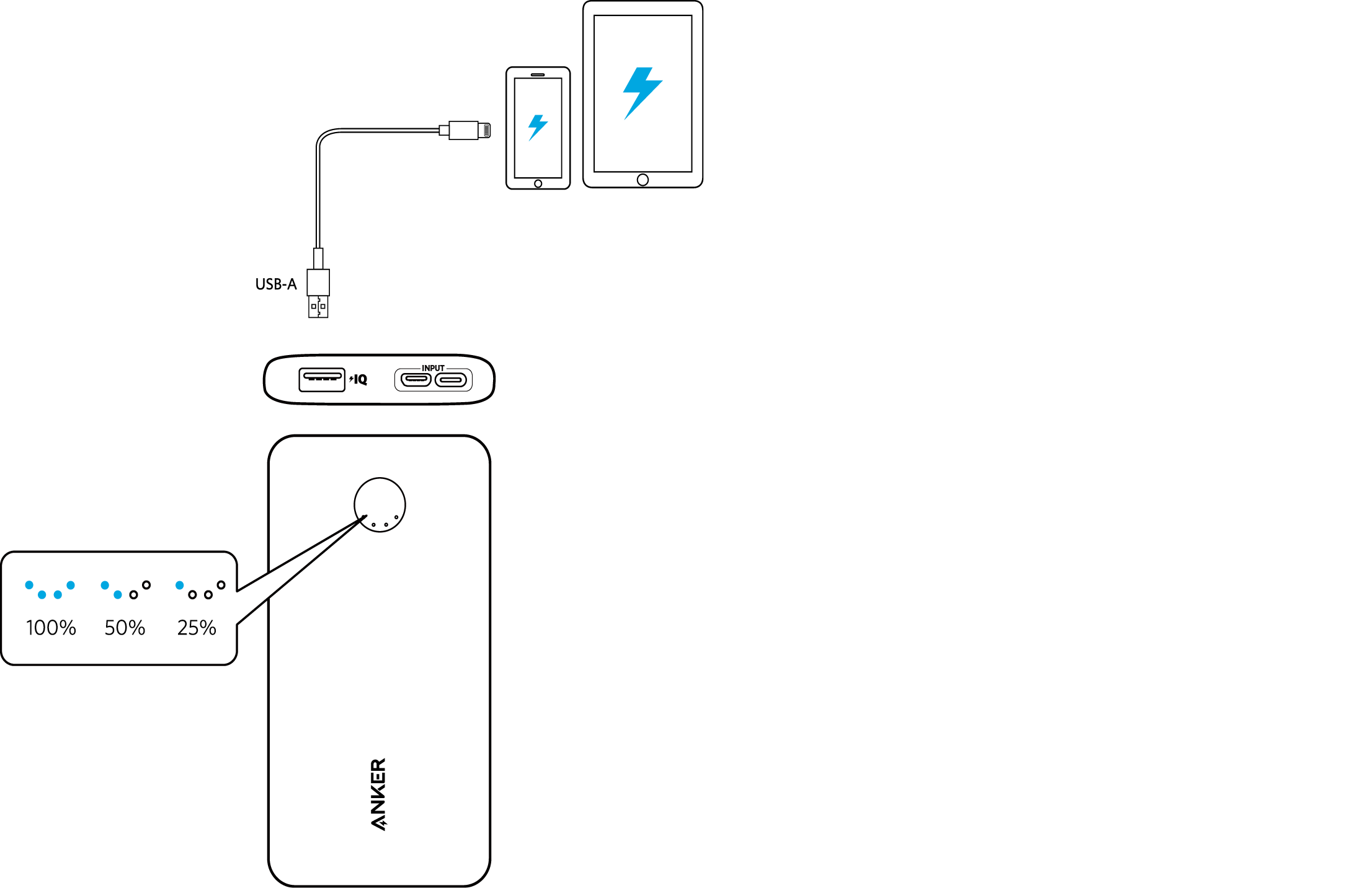① Entra in modalità "carica a gocce": premi il pulsante di accensione due volte o premilo e tienilo premuto per 2 secondi. L'indicatore LED diventerà verde.