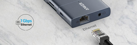 Derzeit ist bei USB-C-Hubs als Netzwerkverbindung eigentlich nur ein Gigabit-Ethernet-Port die einzige Wahl. Dadurch können Sie eine Übertragungsrate von 1 Gbit/s und theoretische Download-Geschwindigkeiten von 125 MB/s erreichen.